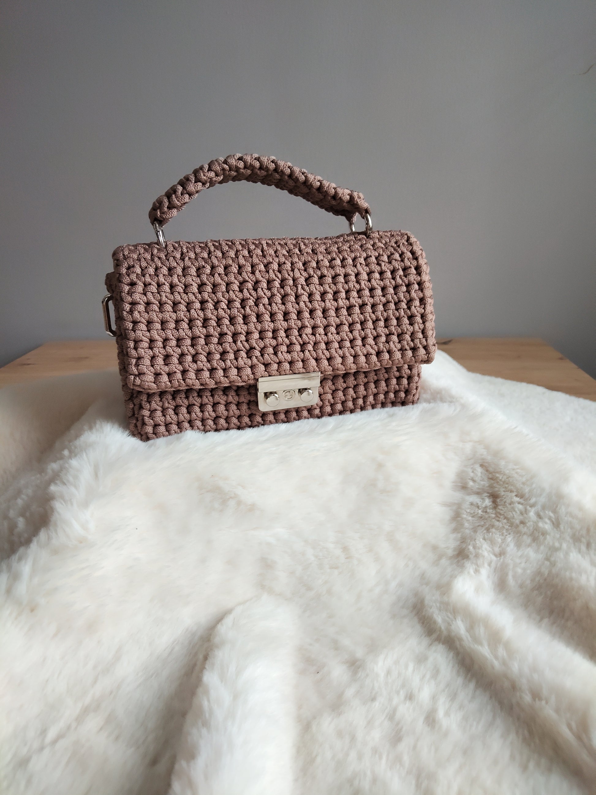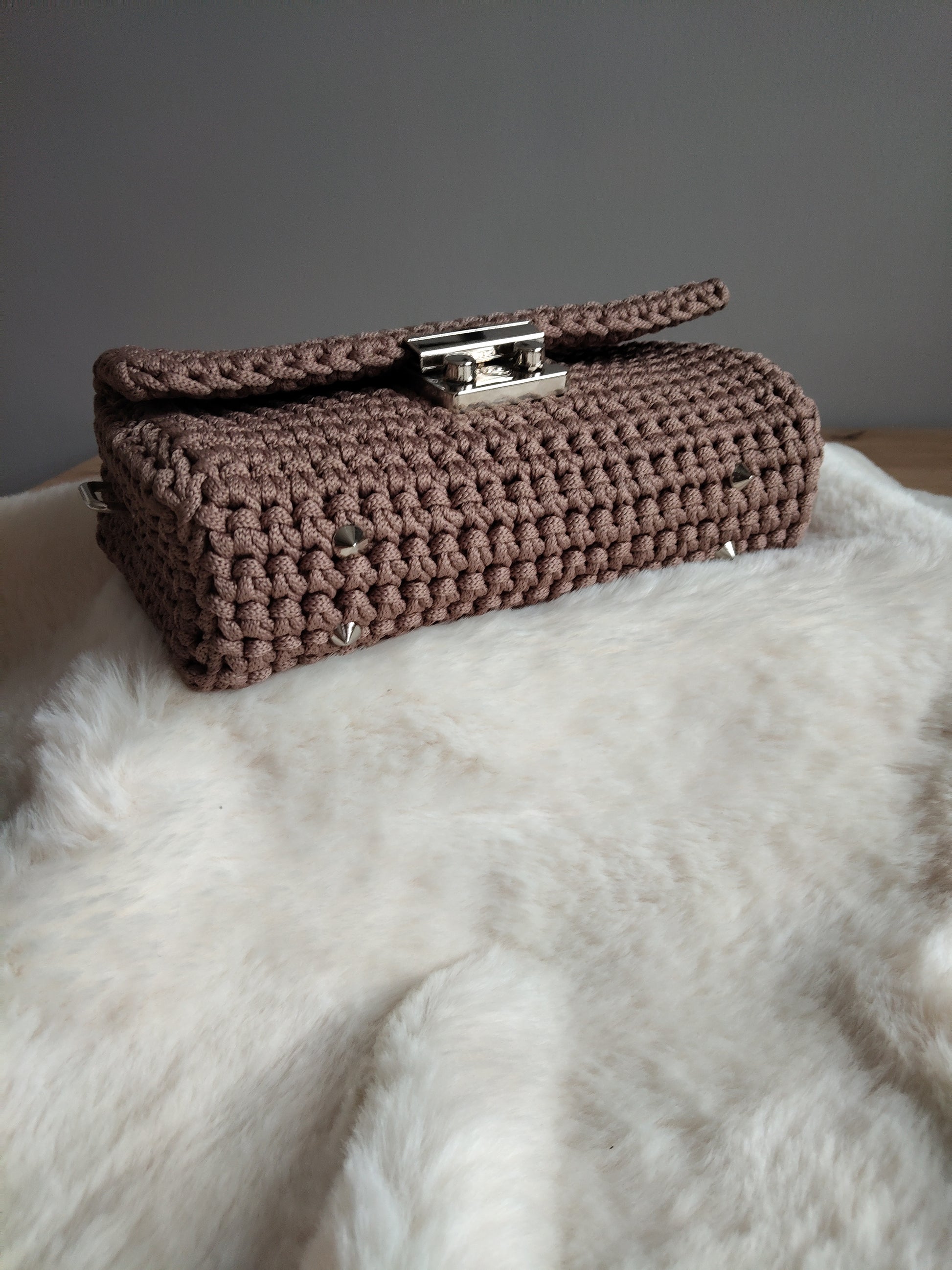 Kabelka Ellys z polyesterovej šnúrky v mokka farbe, strieborné kovové doplnky